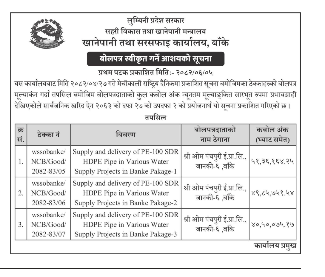 बोलपत्र स्वीकृत गर्ने आशयको सुचना २०८२-०६-०५(हिमालय टाइम्समा प्रकाशित)