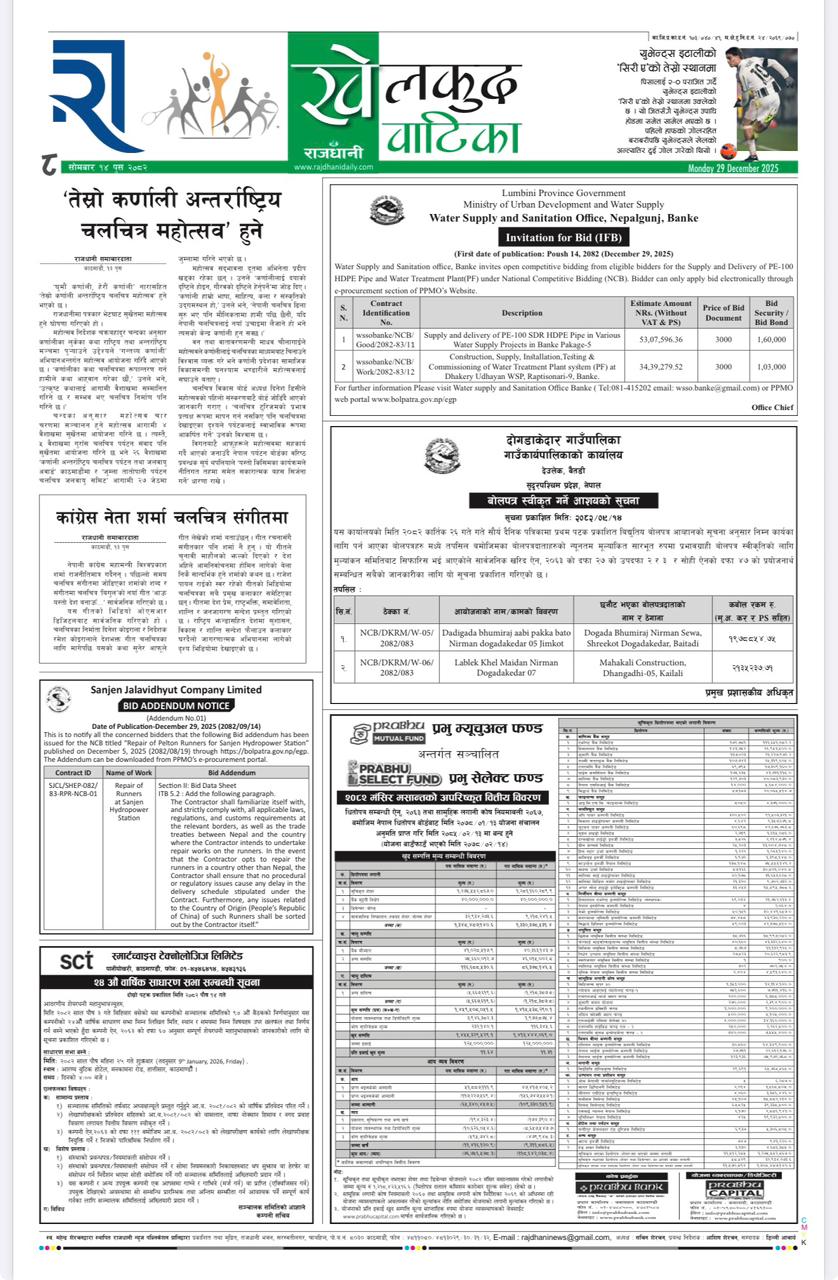 बोलपत्र आवहान सम्बन्धि सुचना २०८२/०९/१४ गते
